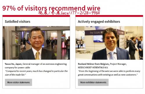 观展商观看并了解了电缆和电线领域***的机械、设备和产品及其解决方案。中国管道、电线、电缆企业想要进入欧洲国家,那么德国杜塞尔多夫电线展(Wire Dusseldorf)是您***的贸易平台。